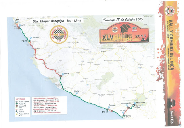 Los pilotos que viene participando de este certamen automovilístico estarán arribando de Ica a Quilmaná a las 2 de la tarde, para luego partir desde Quilmaná, entrando a la panamericana sur por el Km 121 Puerto Fiel, pasando el peaje de Punta Negra, finalizando la toma de tiempos a la altura del puente Mamacona de Lurín.