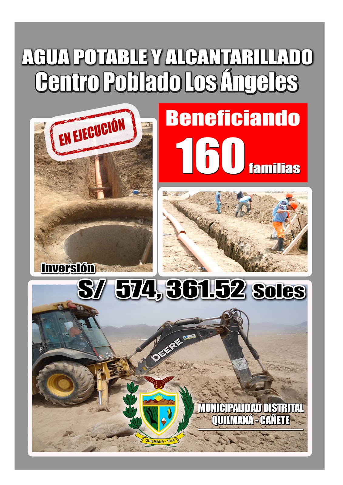 Con la culminación de la obra de ampliación del proyecto de Agua Potable y Alcantarillado que vienen ejecutando la Municipalidad de Quilmaná, beneficiará a 160 familias de la zona alta en el Centro Poblado Los Ángeles.
